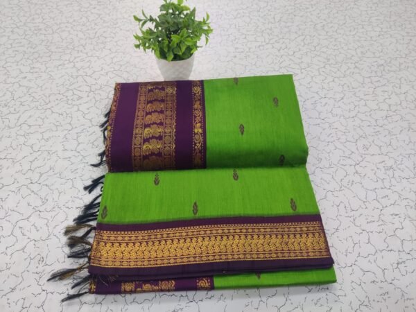 Acrylic first quality 2/100 thread and 100% original Cotton sarees .  Grand jari pallu and contrast blouse 6.30 mtrs. Very Soft and smooth cotton ,saree all over thread puttas